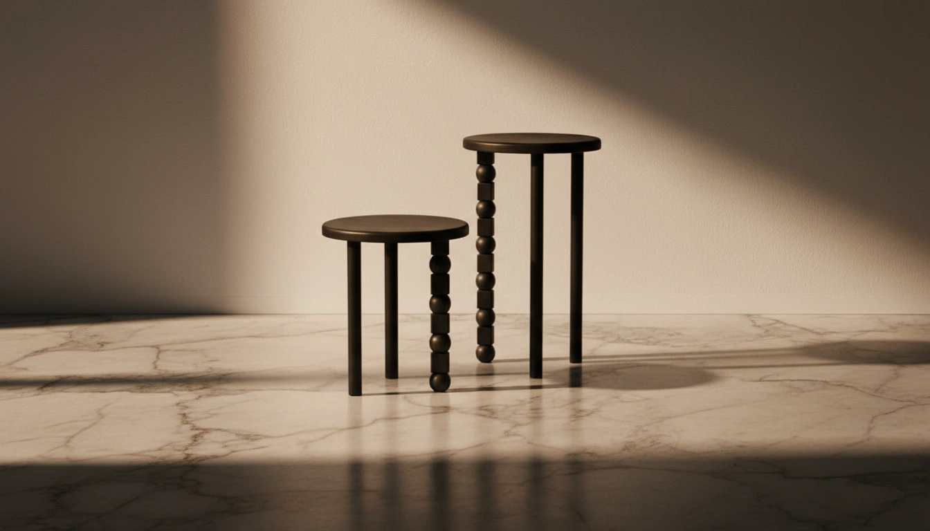 Il tavolino Abacus è un elemento d'arredo che si adatta a qualsiasi spazio, con gambe che si fondono perfettamente in diverse forme geometriche.