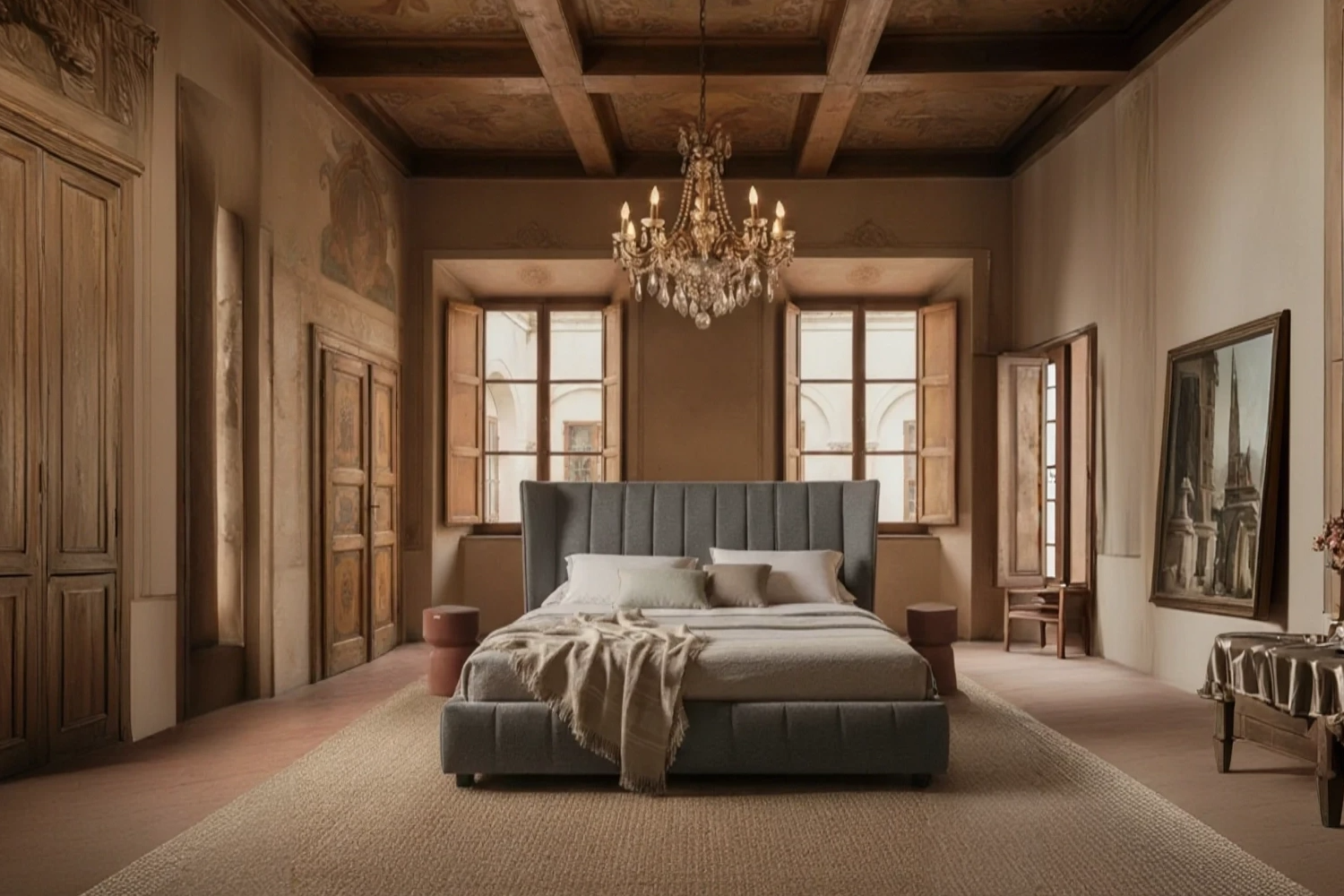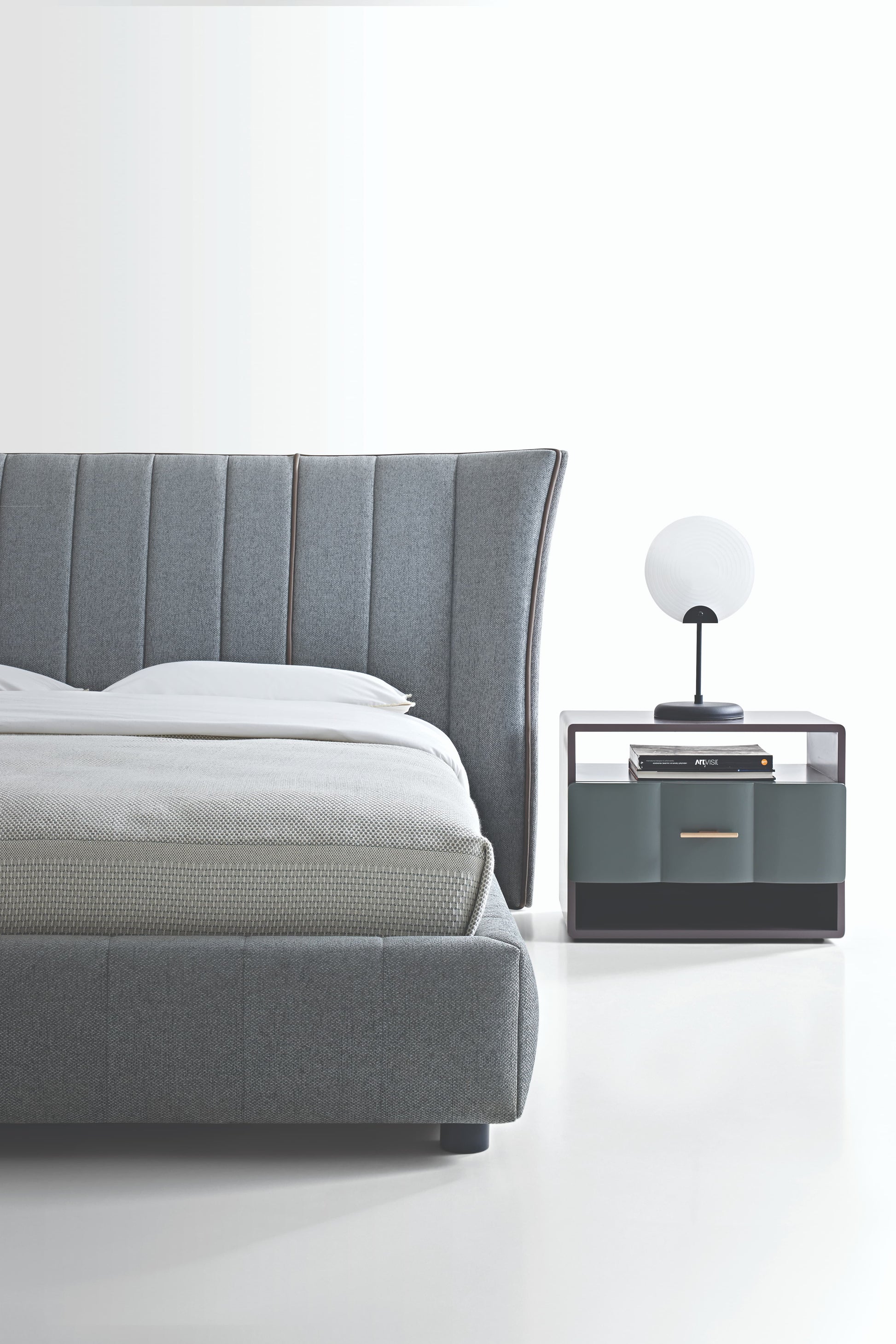 Il letto e la testiera Viola emanano un'eleganza moderna con un design audace e scultoreo. La testiera alta e curva con trapuntatura a canali verticali crea un effetto lussuoso, mentre la struttura imbottita aggiunge calore e raffinatezza. Perfetto per interni contemporanei, questo letto unisce comfort a un'estetica raffinata, diventando un elemento centrale accattivante e accogliente per qualsiasi camera da letto.