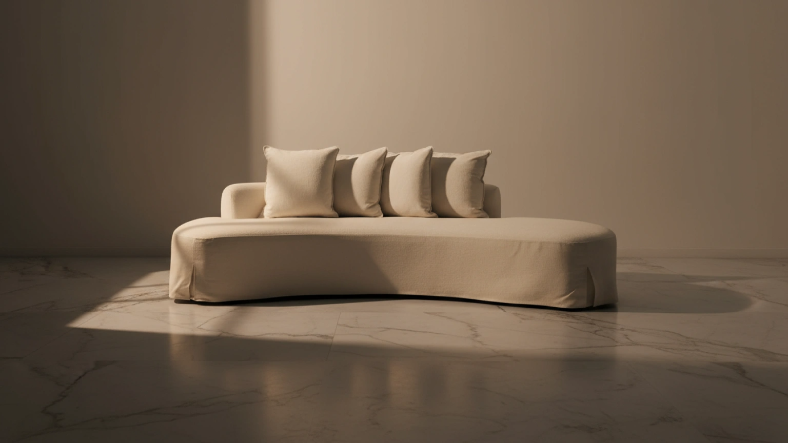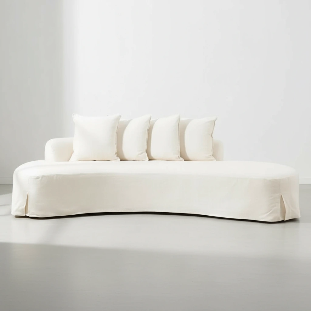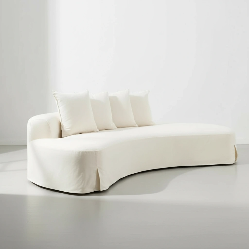 Con la sua scultorea forma ovale, questo divano si inserisce armoniosamente in qualsiasi ambiente. Realizzato su una resistente struttura in legno di faggio e pioppo, è rivestito in un morbido e traspirante tessuto misto lino. Un perfetto connubio tra moderno design organico e comfort invitante.