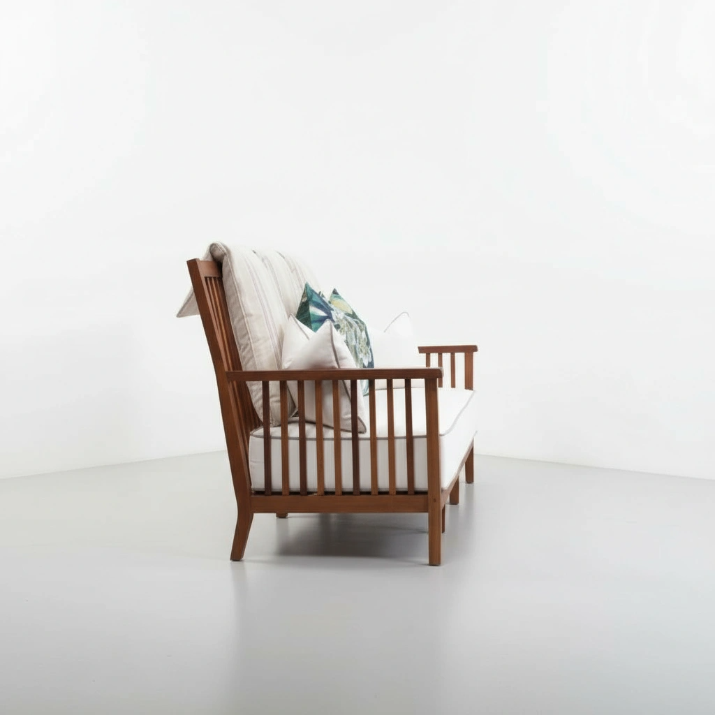 Realizzato in legno di iroko, naturalmente resistente, questo divano da esterno presenta linee pulite e un rivestimento resistente alle intemperie. Disponibile nelle versioni a due e tre posti, si abbina perfettamente alla sedia a dondolo coordinata. Ideale per patii, terrazze coperte o salotti da giardino, con un'eleganza senza tempo.