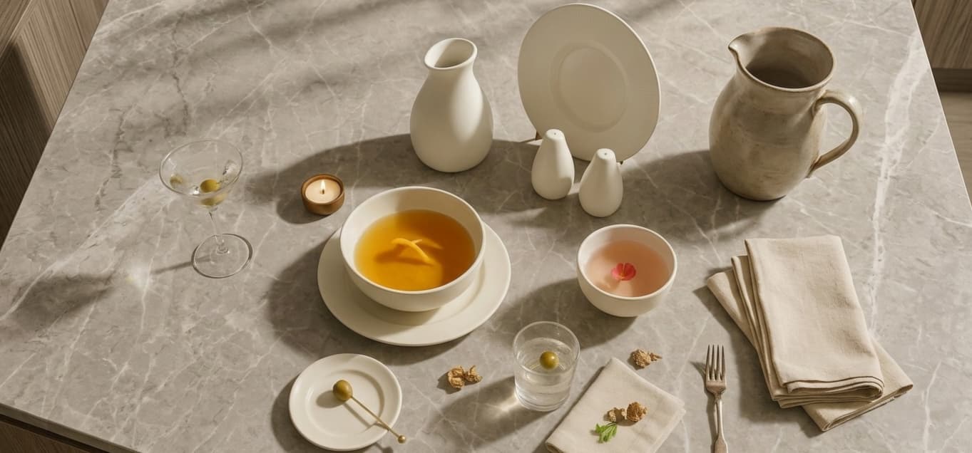 Una collezione di stoviglie pura e architettonica che celebra la bellezza della semplicità. Ogni piatto presenta un bordo pulito e ampio con una leggera concavità, che conferisce alla collezione un carattere strutturato e preciso che lascia che il cibo sia al centro della scena. La collezione è completata da una ciotola da portata di dimensioni generose dalla forma liscia e arrotondata, una mini brocca elegantemente angolata e una coppia di saliere e pepiere scultoree la cui silhouette affusolata a forma di cono aggiunge un tocco moderno e di design alla tavola.