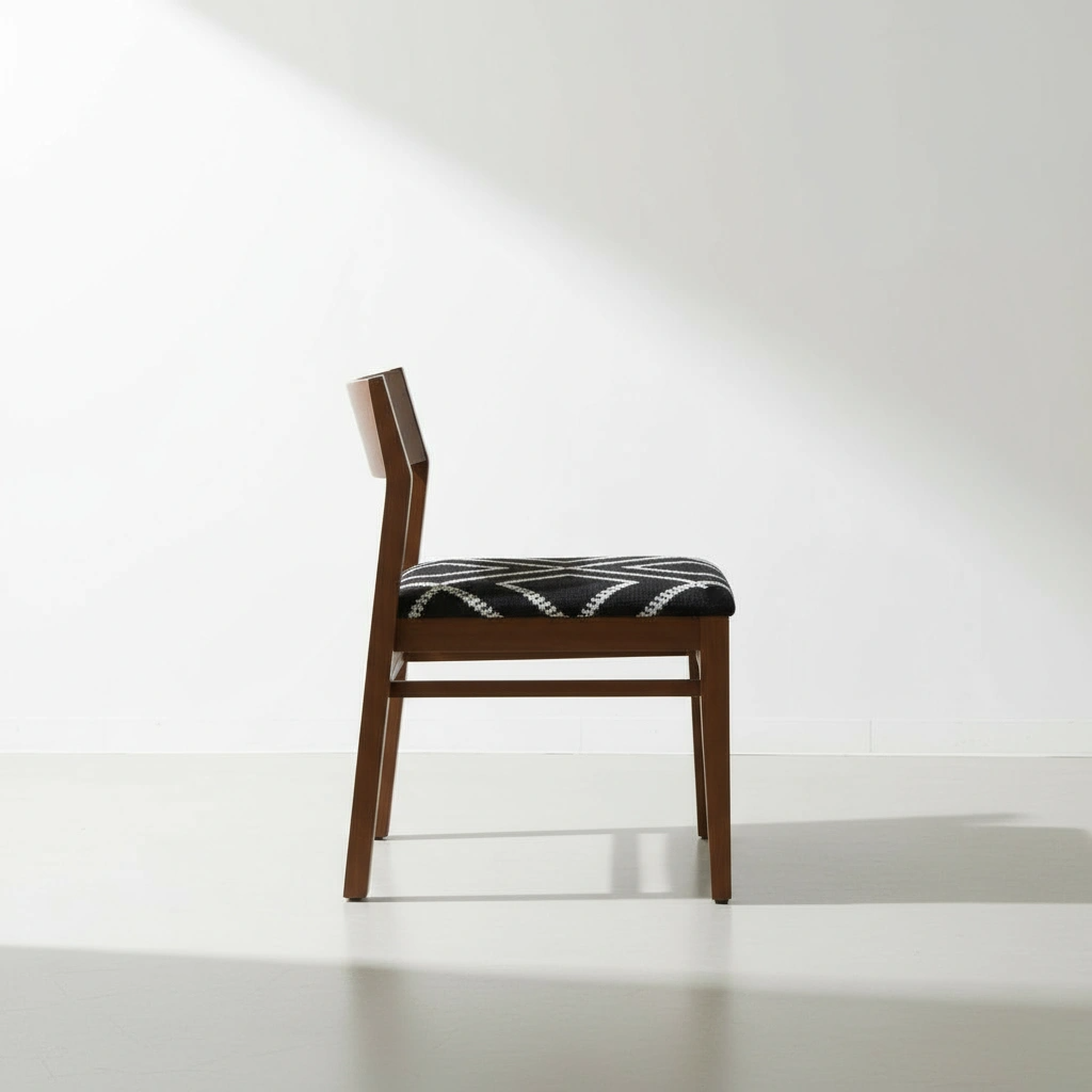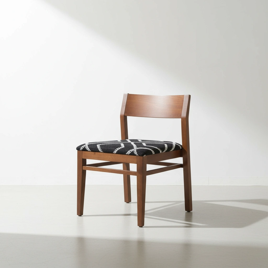 Realizzata in legno massello di faggio, questa sedia presenta un'audace seduta imbottita dalle linee geometriche che aggiunge un tocco moderno. Lo schienale elegante e la seduta comoda la rendono adatta sia per la sala da pranzo che per l'uso indipendente. Un perfetto mix di resistenza naturale e design contemporaneo.