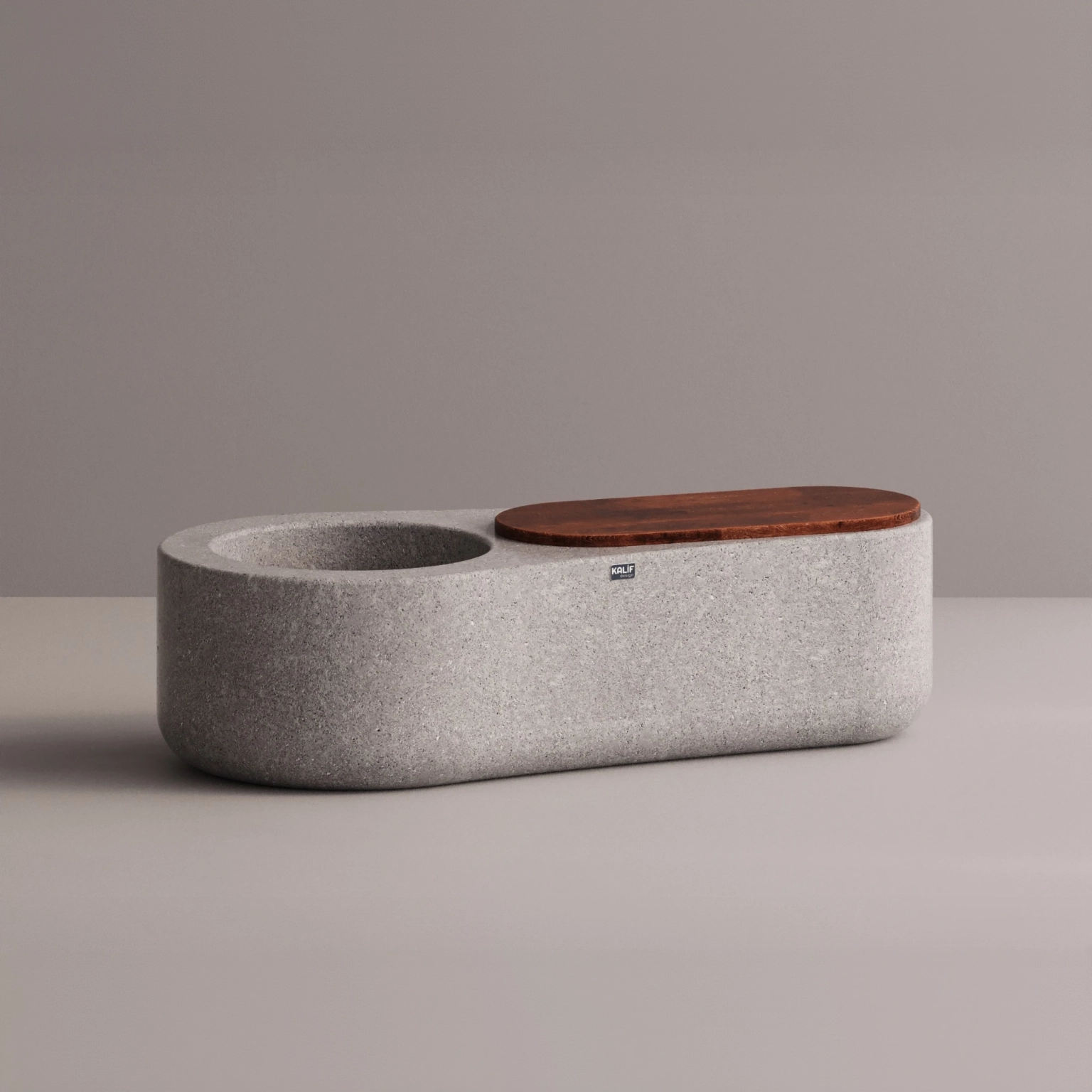 Where design meets versatility — the Camilla Bench seamlessly combines seating, planting, and spatial definition in a single sculptural form. Its integrated planter and wooden seat create a dialogue between nature and structure, offering both functionality and visual harmony. Perfect for dividing open spaces or enriching terraces, it brings organic beauty and refined practicality together. Crafted from our natural stone–concrete blend, it stands as a statement of balance and elegance.