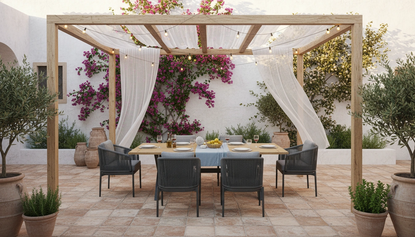 Elevate your outdoor dining experience with this sophisticated dining set, featuring a durable aluminum frame, premium outdoor fabric, and a solid Iroko wood table. Designed for both elegance and comfort, the chairs offer plush cushions and a sturdy rope-wrapped structure, ensuring long-lasting durability. The spacious dining table provides a natural and warm aesthetic, making it a perfect choice for gardens, patios, and terraces. Built with weather-resistant materials, this set is ideal for creating a stylish and inviting outdoor gathering space