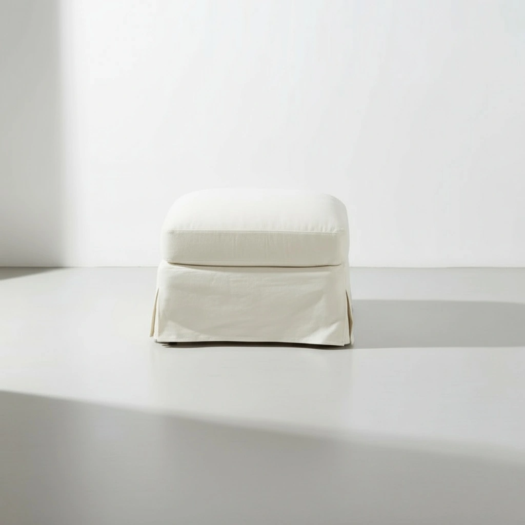 A study in softness and proportion. This piece rests lightly on the floor, defined by smooth contours and tailored simplicity. Its generous volume and subtle drapery create a quiet harmony — a sculptural presence that softens architectural lines with serene comfort.