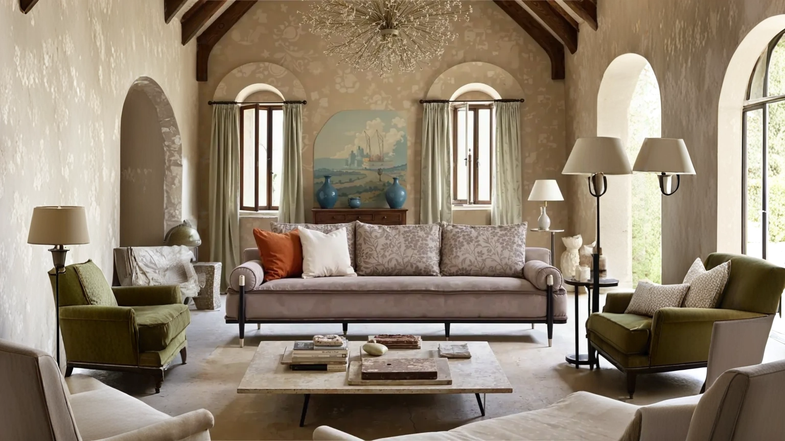 This elegant sofa combines soft velvet upholstery with sculptural paisley cushions and warm-toned accents. Finished with matte black legs and gold details, it offers a perfect balance of comfort and timeless sophistication.