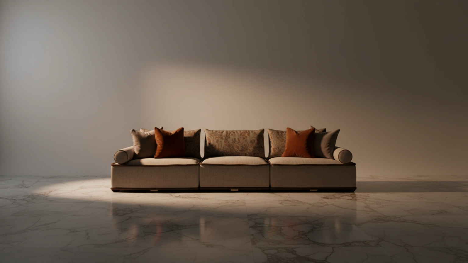 Sculpted for modern elegance, this modular seat features refined Denver Taupe fabric and bold velvet piping that outlines its generous form. Crafted from solid hornbeam wood, it brings both durability and high-end design into harmonious balance.
